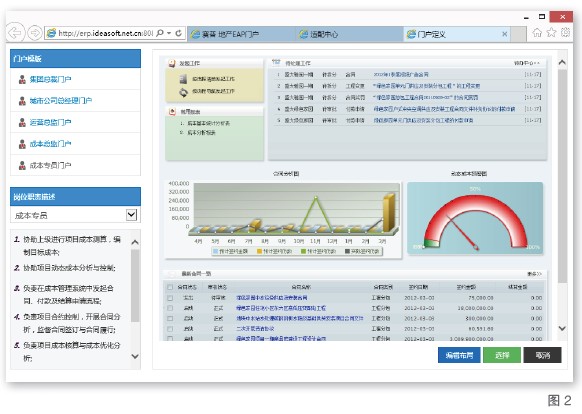 不同的个人、不同的项目、不同的决策专业都需要有不同的工作界面,EAP平台目前整合了协同办公、人力资源、绩效、财务、资金预算、投资分析、项目运营、成本、采购、销售、供应商等10个专业分类100多种不同的管理界面需求点,让个人可以任意选择这些需求点,组合出不同工作需求的门户界面。