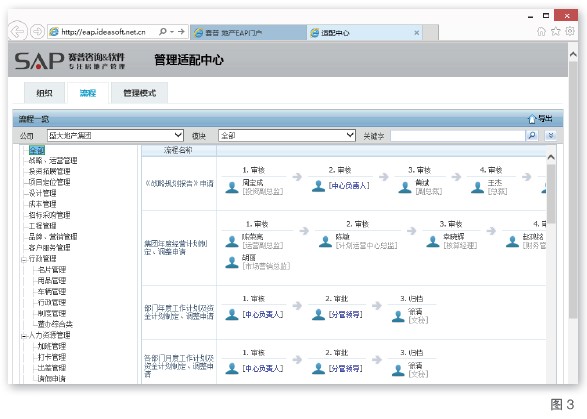 企业的管理权责流程会不断改变,EAP 平台流程适配中心可以方便的调整设置企业流程,如便于从两级架构管控扩展为三级架构管控; 在新建立分公司后,通过流程复制,把一个分公司的流程复制到新建立的分公司,协助管理体系的快速建立。