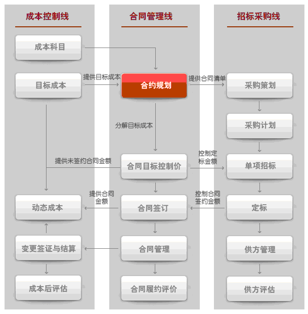 通过解决以上三个重点问题, 合约规划将目标成本、合同管理和招标采购进行了有效的衔接,对成本专业化管理提出了更高的要求,构建了更为系统、专业的成本管理体系:
