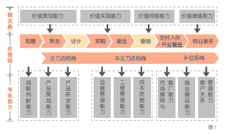 在商业项目开发价值链的价值策划、价值实现、价值转移和价值增值四大阶段,开发商需要通过业务流程优化,形成相应的专业能力,以实现在各阶段充分理解和实现各利益主体利益诉求,顺利实现商业项目利益链条的传递。