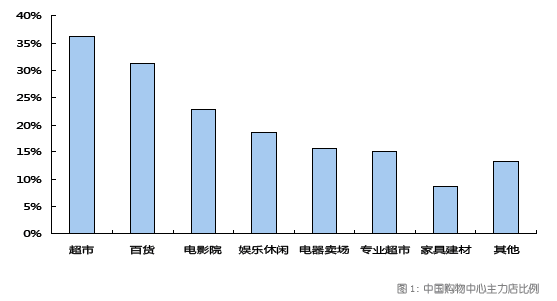 一般购物中心中都有百货店, 作为购物中心的主力店,百货起着吸引客流、消化大量租赁面积、丰富货品、提升档次形象、提升物业价值及贡献稳定收益等作用。因此,传统大型购物中心一般会有一到两个百货作为主力店,国内外购物中心莫不如此。中购联数据显示,百货成为购物中心主力店的比例高达31.3%,百货仍然是我国购物中心的重要业态组合。
