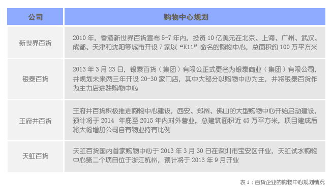 第一,购物中心开发资金需求大,百货企业面临较大的资金压力;