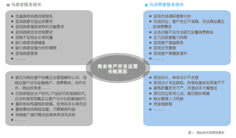 究其根本,商业地产是商业和地产的有机结合, 是联系商家和消费者的载体和平台,任何脱离商家服务和消费者服务的商业平台必然走向没落。随着商业地产的成熟,强调商家服务和消费者服务的逻辑和管理平台建设才是商业地产开发和运营管理着力点和出发点。