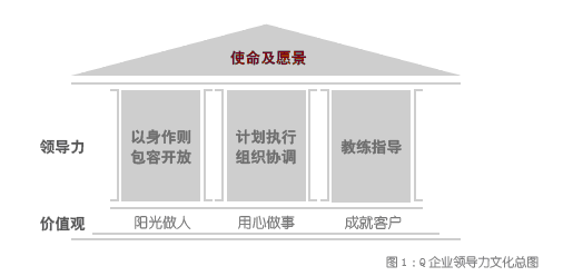 经过全面调研及对企业现阶段迫切需求的分析,Q 企业战略发展“区域”基本锁定,“产品” 优势并不突出,“人”则是个可以尝试的突破点。在赛普的建议下, Q 企决定一方面通过梳理组织、再造流程来提升整体组织能力,另一方面通过提升关键人才能力,特别是针对全体管理者进行领导力提升来推动企业经营业绩的提升,在“持续调控,分化加剧”的大环境下,奋力厮杀力争突围。