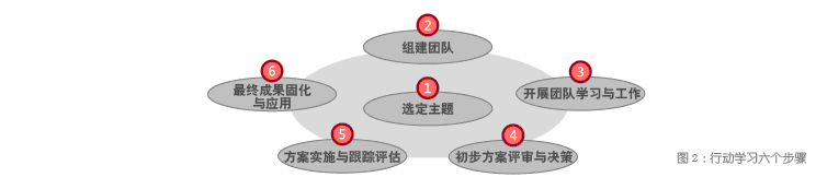 行动学习项目的基本流程可以分为以下6 个步骤(图2),我们称它为“六步成诗”: