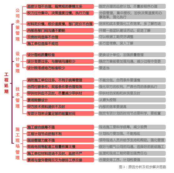 选题描述:Q 企2013 年5 月D 地块集中交房,比预计交房时间推迟90 天。项目总控计划制定基本科学,项目一二级计划分解合理,问题在于各阶段性计划(如景观、消防、供水供气等子项目阶段不能配合节点计划)滞后,导致一系列问题,例如景观经过多次调整仍然达不到公司评审要求,材料不能如期进场,施工进度和原计划不匹配。