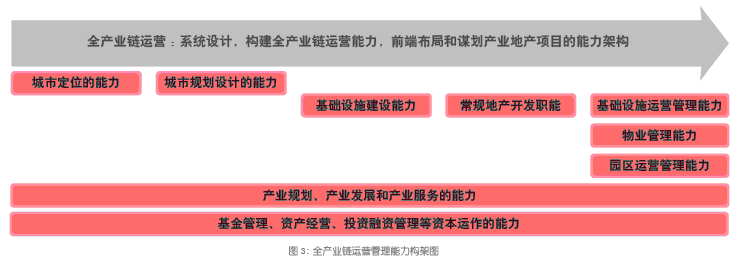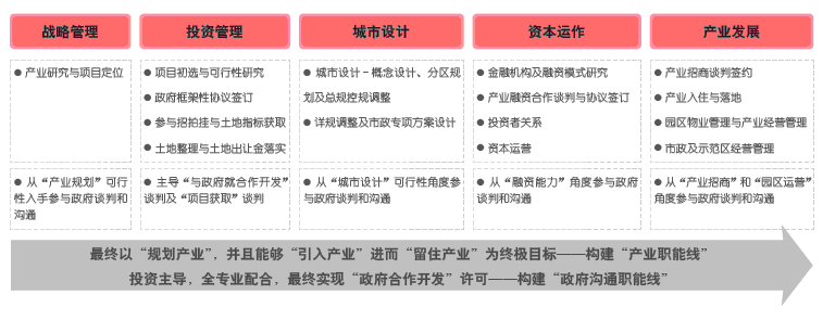 站在城市发展的高度,在城市建设开发的基础上,辅助政府进行城市基础设施的运营。以企业为主导的产业园区,企业既是园区的投资者和建设者,同时也是园区的运营者和管理者,以城市运营商的定位全方位地参与到园区乃至城市的建设和运营中,全价值链能力储备和构架至关重要。围绕城市的总体发展目标和发展规划,充分运用市场化的机制和手段,通过发挥企业产业优势和资源优势,结合城市发展的特殊机遇,既以经济利益为导向,又注意兼顾长远的社会效益,以此带动城市和区域经济的发展,顺应中国城市发展的必然。