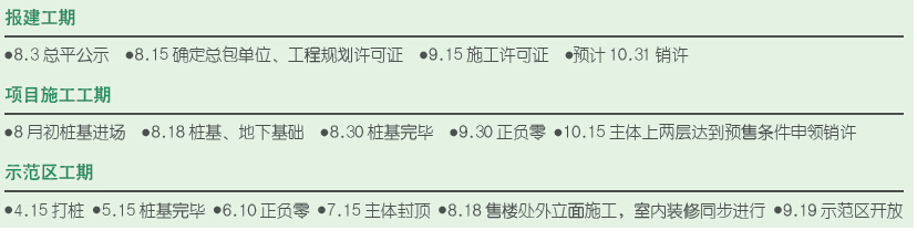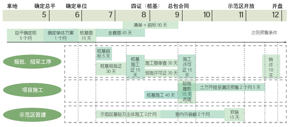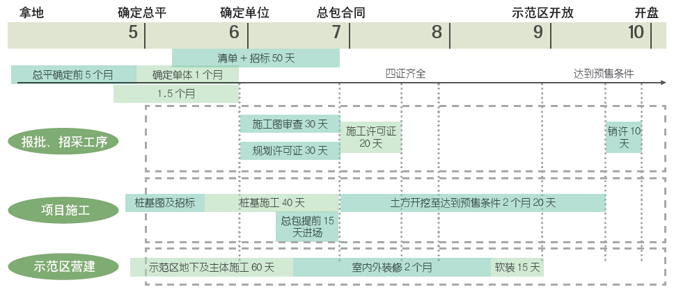 标杆项目平均在拿地后4 个月即确定示范区方案及施工单位,开始进场施工;