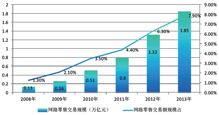 图2:网络购物占社会消费品零售的比重发展趋势图