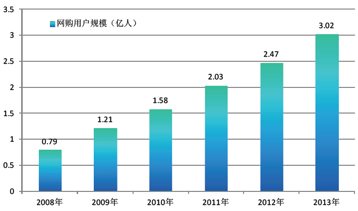 截止2013 年年底,我国网络购物的用户规模达到了3.02 亿,相比2012 年的2.47 亿,增长了22.27%。(图3)
