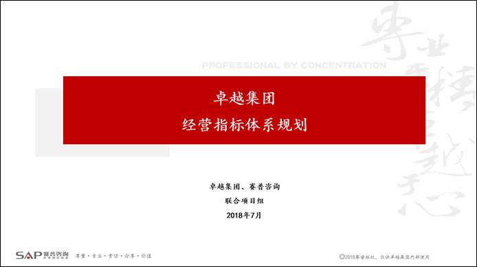 目前卓越置业集团制定了“四前五后,齐头并进,优展先行,早收晚支,收放有度,拿来主义,有头有尾,使命必达”的8大方针,并在“高土储,高周转,强融资”的经营导向下,全力为2020年地产开发版块冲击千亿目标而努力。为此,在运营提效方面,卓越置业集团携手赛普,以本次经营指标咨询项目为驱动,优化经营指标体系,开发经营分析标准模块,打造经营看板信息化平台,切实推进开发经营信息化治理水平的提升。