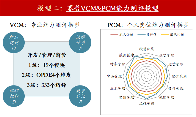 VCM模型与PCM模型是赛普基于客户实践沉淀,形成的一套行业通用认可的评价标准,能够有效客观地对企业专业条线能力以及员工专业能力进行评价,广泛应用于管理咨询诊断过程。