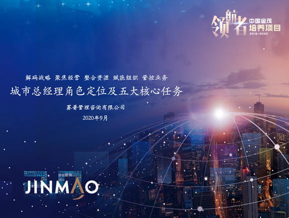 2020年,金茂学院针对如何正确认知城市总的角色定位与管理要求的课题,特别邀请了赛普为中国金茂开发、持有、增值板块等领航者学员,定制化设计《城市总经理角色定位及核心任务》,赛普通过前期需求调研分析并结合行业研究成果进行课程规划并于9月12日成功开课,基于金茂“城市运营商”的战略定位以及领航者能力素质模型的胜任力要求,围绕城市总如何管理目标实落地、聚焦经营保结果、整合资源促创新、赋能组织稳成长、管控业务避风险五大核心内容,助力领航者学员成为具备战略格局、符合金茂领导力素质要求,有效确保金茂战略落地的“高准备度领航者”。