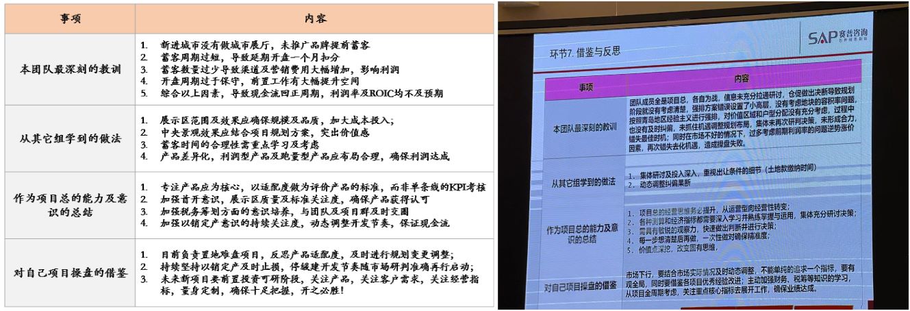 四、学习总结:项目总们对项目操盘全过程进行了深度的总结复盘,通过对每个演练环节的行动、决策和结果进行深入分析,复盘成功和失败的关键因素,提炼出有价值的经验和教训,为未来的项目操盘提供参考借鉴,提升项目管理能力,确保业绩目标达成。