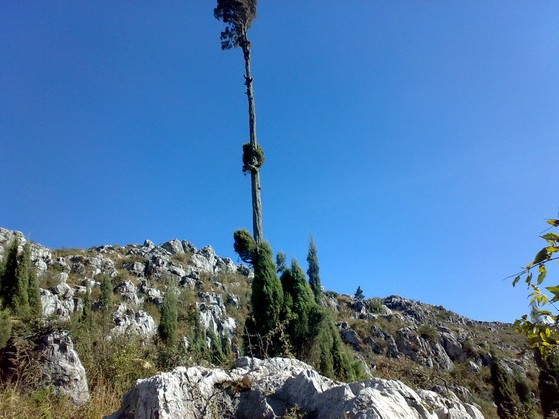 上山那一路风和日丽,越靠近山顶,风就越大。走到山顶之后,看到山上那些挺拔的大树也被吹弯了树梢。脚下的泥道也逐渐变成了嶙峋的石道。那种奇形怪状的石头垒起来的石路,就是云南的一大特色。