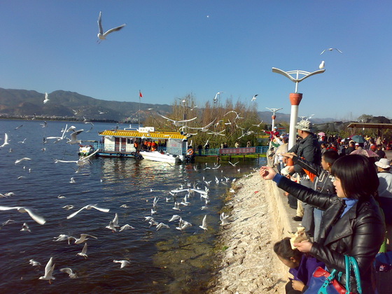 这时热情的客户又提出带我们去观看昆明另一个别具特色的景观:红嘴鸥。