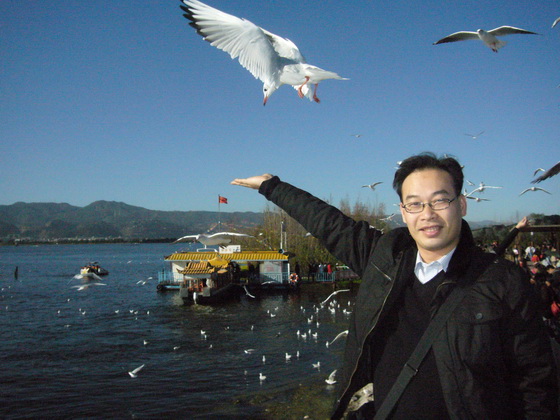 尽管已将近不惑之年,可是这样与从遥远的西伯利亚飞来春城过寒冬的红嘴鸥的亲密接触,这样随处可见的群鸥盘旋、人鸥相戏、其乐融融的景象,依然让我心里有说不出的激动与惬意。