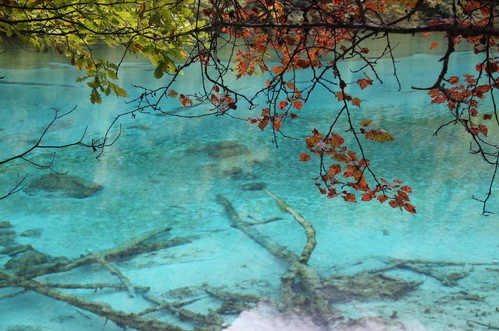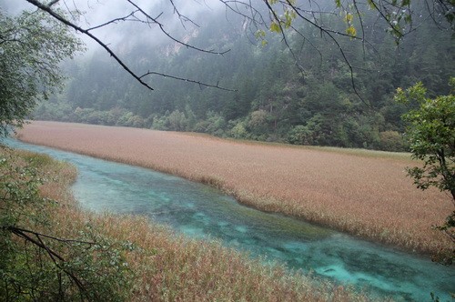 九寨沟的水很美,美得不负“九寨归来不看水”这一盛名。但是天公不作美,这雨下下停停,只好雨中跟着不同的观光车一路走走停停,走马观花地走了一路。到了熊猫海的时候,实在抵抗不住眼前美景的诱惑,才在淅沥细雨中下了车,披着雨衣徒步往前走了起来。